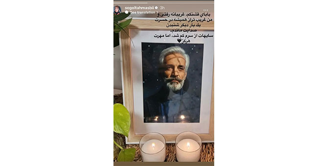 أعلنت الفنانة الإيرانية "سوغل طهماسبی" عن وفاة والدها، ونعت الفقيد عبر حسابها الشخصي على مواقع التواصل الاجتماعي.